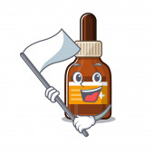 Odważne pigułki lek butelka maskotka znak projekt trzymając białą flagę