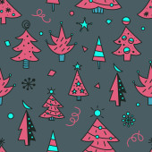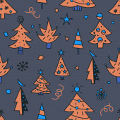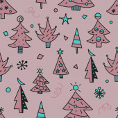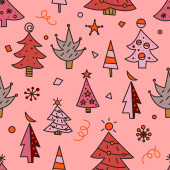 Choinka bazgroły płynny wzór do kartek okolicznościowych lub banerów. Ręcznie rysowany nadruk z choinkami do pakowania papieru, tekstyliów