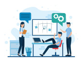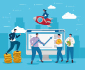 biznesmeni z konstrukcją wektorów rakiet i laptopów