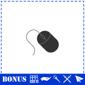 Ikona myszy komputerowej płaska. Prosty symbol wektora i ikona bonusu