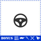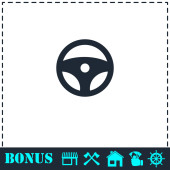 Ikona koła kierownicy płaska. Prosty symbol wektora i ikona bonusu