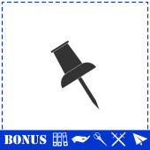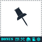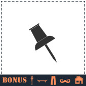 Push pin ikona płaska. Prosty symbol wektora i ikona bonusu