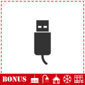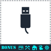 Ikona pamięci flash Usb płaska. Prosty symbol wektora i ikona bonusu