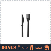 Ikona noża widelcowego płaska. Prosty symbol wektora i ikona bonusu