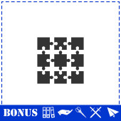 Płaska ikona Puzzle. Prosty symbol wektora i ikona bonusu