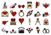 Valentine ikony szablon, kolorowy wektor ilustracja