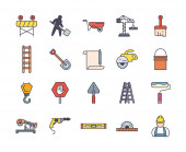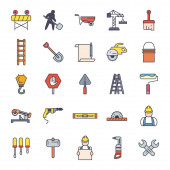 narzędzia budowlane ikony ustawione w stylu płaskim izolowane na białym tle wektor ilustracji