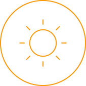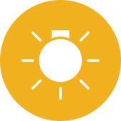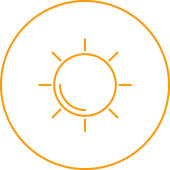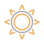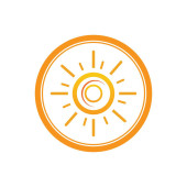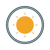 ikona wektora jasności. styl jest dwukolorowy płaski zaokrąglony symbol, pomarańczowe i żółte kolory, białe tło