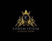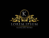 Luksusowe logo litera K, kwitnie kaligraficzny monogram emblemat dla restauracji, butik, ślub, hotel, fotografia, moda i etykieta.