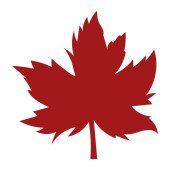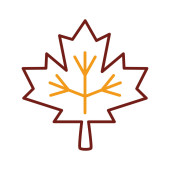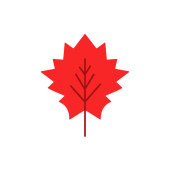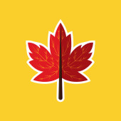 ikona liści klonu w płaskim stylu izolowane na czerwonym tle