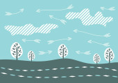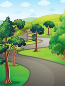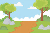 ilustracja wektorowa krajobrazu z drzewami i trawą