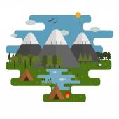 malowniczy krajobraz płaska ikona, wektor ilustracja