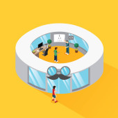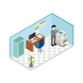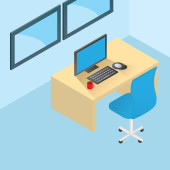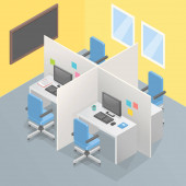 Miejsce pracy 3d wnętrza, nowoczesny wektor ilustracji