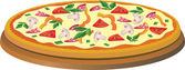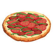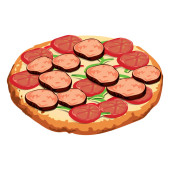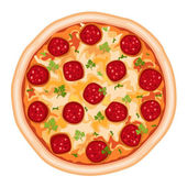 pizza z salami, serem, pomidorami, oliwkami, bazylią, ziołami, izolowana na białym tle