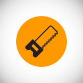 ikona piły w płaskim stylu izolowane na czerwonym tle