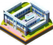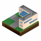 widok izometryczny domu z dachem i drewnianą podłogą.