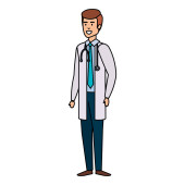 lekarz z ikoną stetoskopu na białym tle. ilustracja wektora