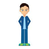 wektorowa ilustracja mężczyzny w niebieskiej koszuli z brodą i krawatem.