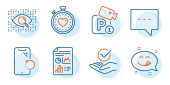 Zdjęcie "Czat wsparcia, Budzik i naturalne znaki bielizny. Kropka, Program lojalnościowy i Smartphone czyste ikony linii zestaw. Statystyki seo, pyszne symbole uśmiechu. Wykres prezentacji, Gwiazda Bonusowa. Wektor" może być wykorzystywane do celów osobistych i komercyjnych zgodnie z warunkami zakupionej licencji Royalty-free. Obraz jest dostępny do pobrania w jakości wysokiej rozdzielczości do 5760x3840.