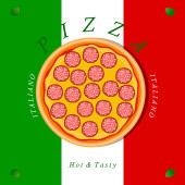 pizza z pepperoni, serem i salami. ilustracja wektora