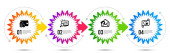 Usuń kolejność, Organic testowane i ikony Megafon prosty zestaw. Schody czasowe infografiki. Znak zapytania. Czysty kosz, bezpieczna przyroda, reklama marki. Pomóż mi. Biznes gotowy. Wektor