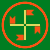 wektor ilustracja czerwonego i zielonego okrągłego przycisku z kwiatem