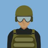 żołnierz ze skrzyżowanymi ramionami odizolowany na białym tle