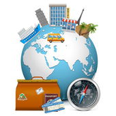 walizka podróżna z biletami i paszportem. ilustracja wektora