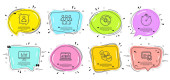 Zdjęcie "Dolar, cel dolara i znaki wymiany walut. Pęcherzyki mowy z cytatami. Karta kredytowa, koszyk i ikony zwiększające procent linii zestaw. Raport księgowy, symbole innowacji. Wektor" może być wykorzystywane do celów osobistych i komercyjnych zgodnie z warunkami zakupionej licencji Royalty-free. Obraz jest dostępny do pobrania w jakości wysokiej rozdzielczości do 5760x3840.