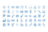 Instrumenty muzyczne linia styl ikona zestaw wektor projekt