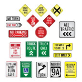 zbiór tablic drogowych płaska ikona, wektor ilustracja