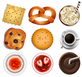zestaw różnych potraw i deserów. ilustracja wektora