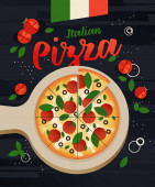 Zdjęcie "pizza ze składnikami. ilustracja wektora" może być wykorzystywane do celów osobistych i komercyjnych zgodnie z warunkami zakupionej licencji Royalty-free. Obraz jest dostępny do pobrania w jakości wysokiej rozdzielczości do 5760x3840.