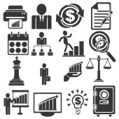 Ikony biznesu i zarządzania, stylizowany wektor ilustracji