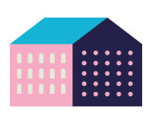 Różowe i niebieskie budynki miasta wektor projektu