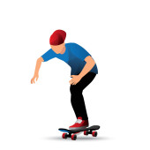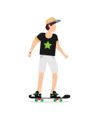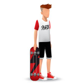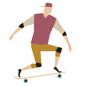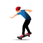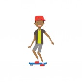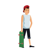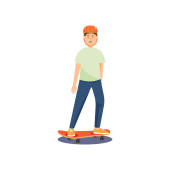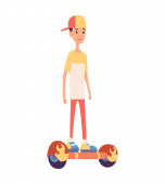 wektorowa ilustracja mężczyzny w niebieskim hełmie z deskorolką