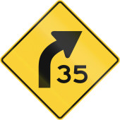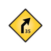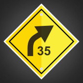 żółty znak drogowy ze znakiem drogowym na zielonym tle
