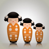 wektor ilustracja rodziny różnych japońskich znaków