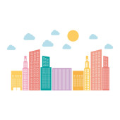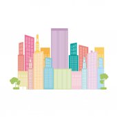 Różowy niebieski i fioletowy budynek miasta wektor projektu