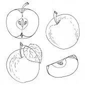 Zestaw wektorowych jabłek na białym tle. Ręcznie rysowany szkic. Ekologiczne jedzenie. Ilustracja wektora. Izolowany rysunek na białym tle.