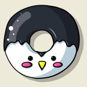 Oszklone zwierzaki z pączków. Odizolowane pączki z glazurą i gryzem, zjedzone placki czekoladowe lub pączki z karmelu