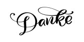 Ręcznie szkicowany cytat DANKE w języku niemieckim jako reklama, baner internetowy. Przetłumaczone Dziękuję. Litery na baner, nagłówek, kartkę, plakat, ulotkę