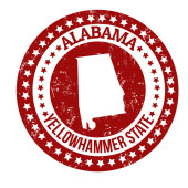 streszczenie etykiety z nazwą i mapę stanu alabama
