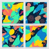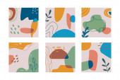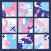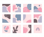 Ręcznie rysowane tło. Doodle modne abstrakcyjne kwiatowe tabliczki, banery social media, twórczy współczesnej estetyki wektor ilustracji zestaw