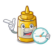 Obraz wesołej medycyny syropu trzymającego zegar. Ilustracja wektora