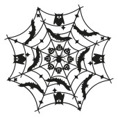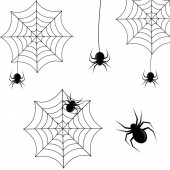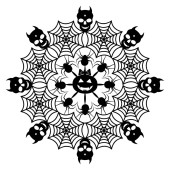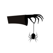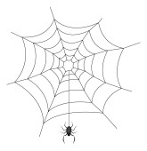 pająk wiszący na sieci, czarny zarys biały tło, kolor wektor ilustracja, projekt, dekoracja, ikona, Halloween wakacje