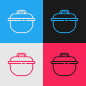 Pop linii sztuki Gotowanie ikona pot izolowane na tle koloru. Gotować lub dusić symbol żywności. Wektor.