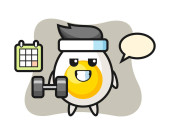 Pomarańczowy owoc kreskówki robi fitness z hantlem