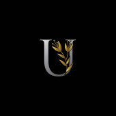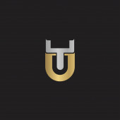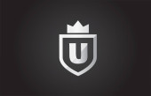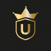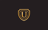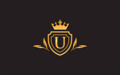 Złoty Heraldyczny Monogram Literacki U. Elegancki retro minimalny kształt tarczy. Korona, Castel, Królestwo Logo Design.