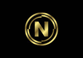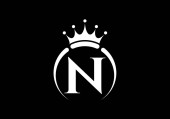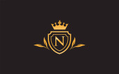 Złoty Heraldyczny Monogram Literacki N. Elegancki retro minimalny kształt tarczy. Korona, Castel, Królestwo Logo Design.